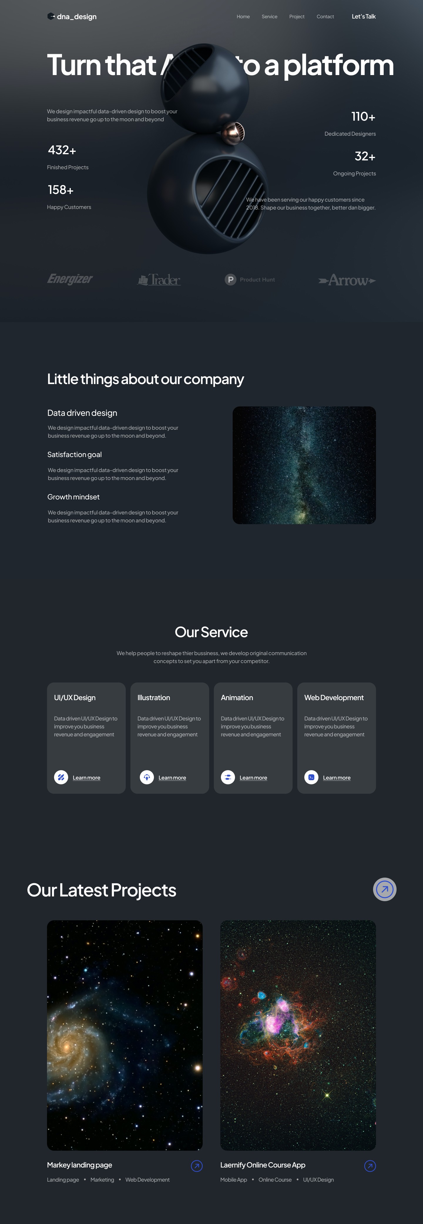 We are a tight-knit team of creative visionaries and technical experts. Our diverse backgrounds converge in a shared passion for effective design and cutting-edge digital solutions. We thrive on challenges, transforming complex ideas into elegant, user-centric experiences. We mainly focus on Web Design, UI/UX & Branding for the Web3, Scientific, Advanced Technology, Luxury, and AI sectors.